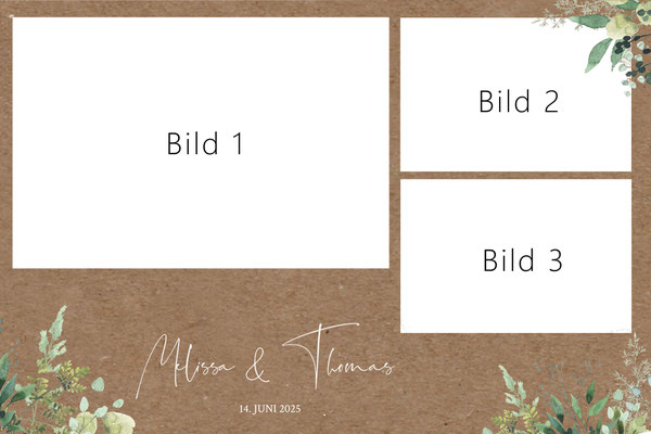 individuelle Layouts/Collage (mehrere Bilder in einem), Overlays (Name, Datum oder Firmenlogo) können auch hier verwendet werden.